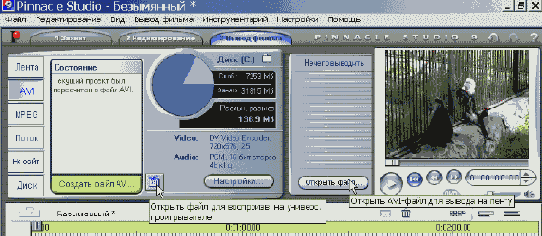 Если вы работаете с платой видеозахвата и хотите создать AVI-файл для вывода на ленту, укажите в вышеприведенных инструкциях кодек, используемый вашей платой захвата, вместо кодека DV. В примере на Рисунок 14.5 Pinnacle DCxx MJPEG Compressor-кодек, который использует плата захвата Pinnacle DC10.
